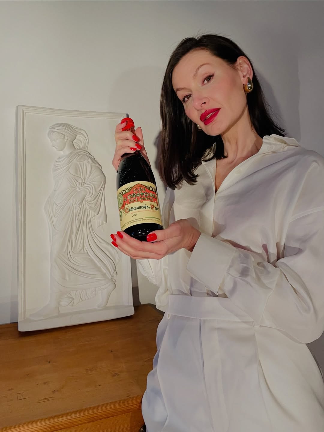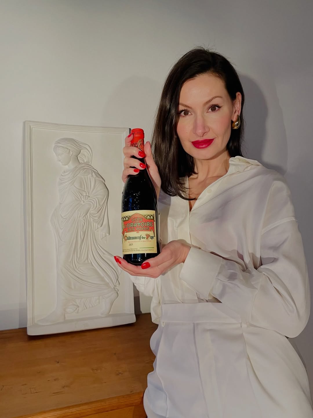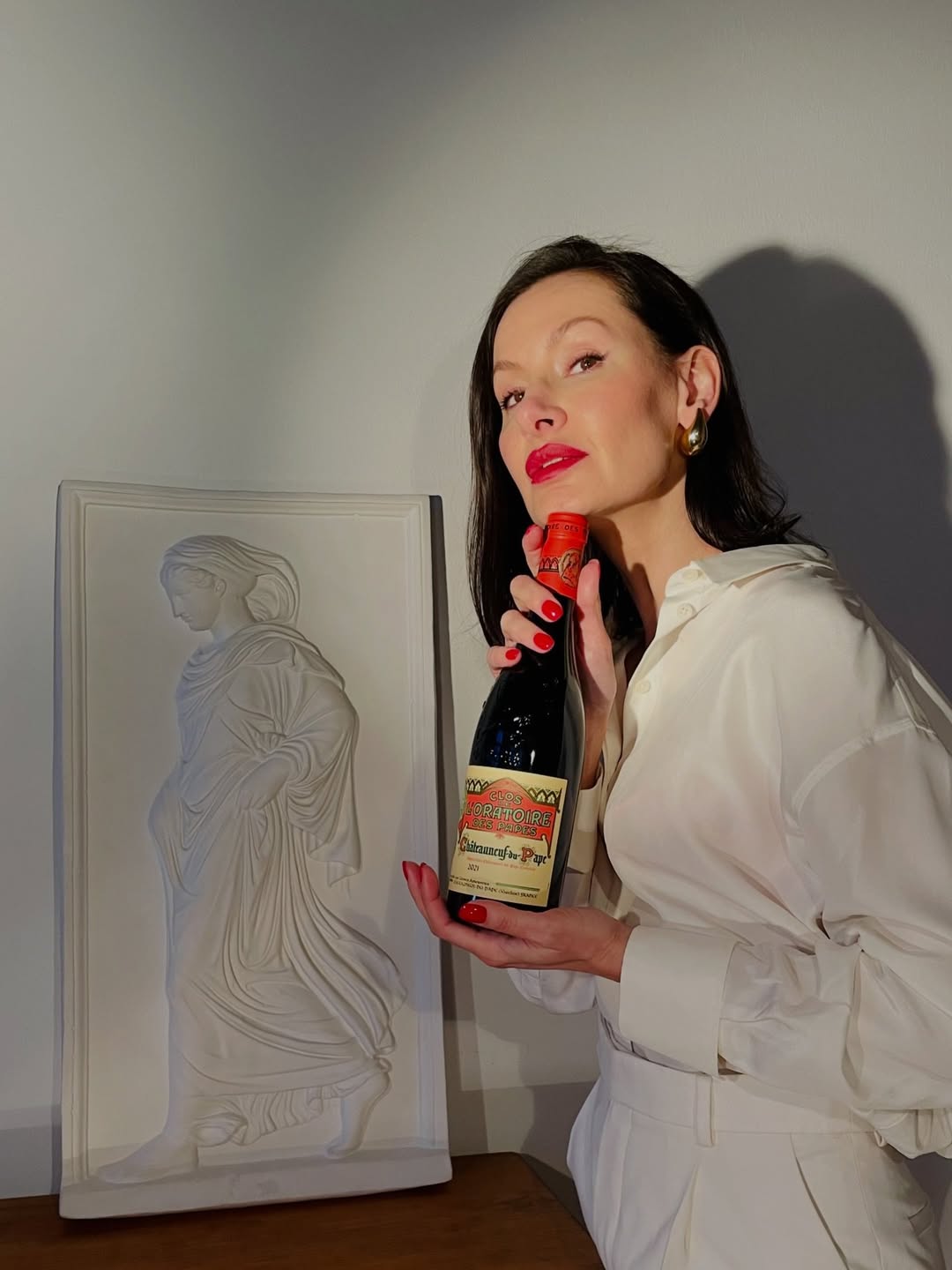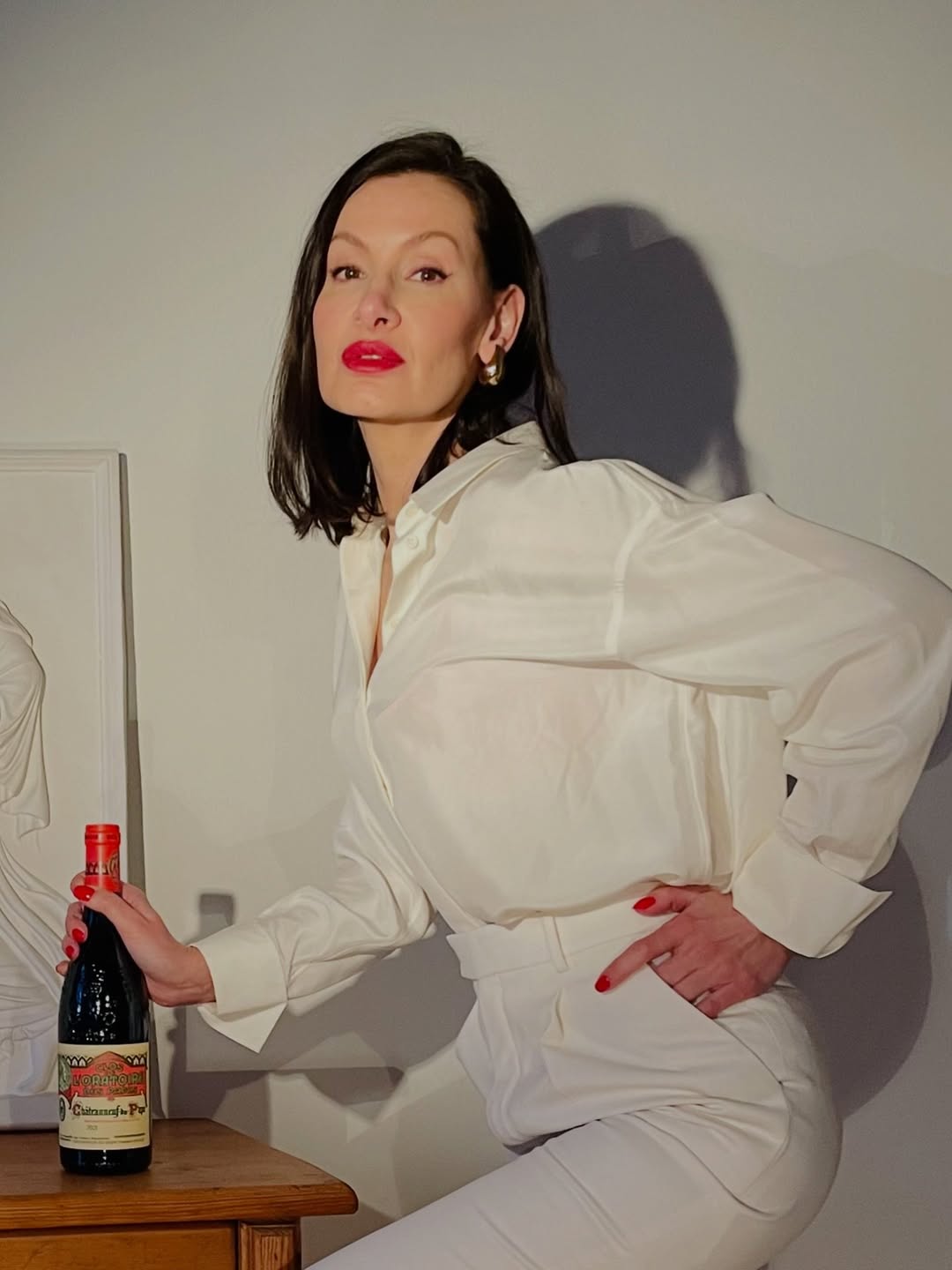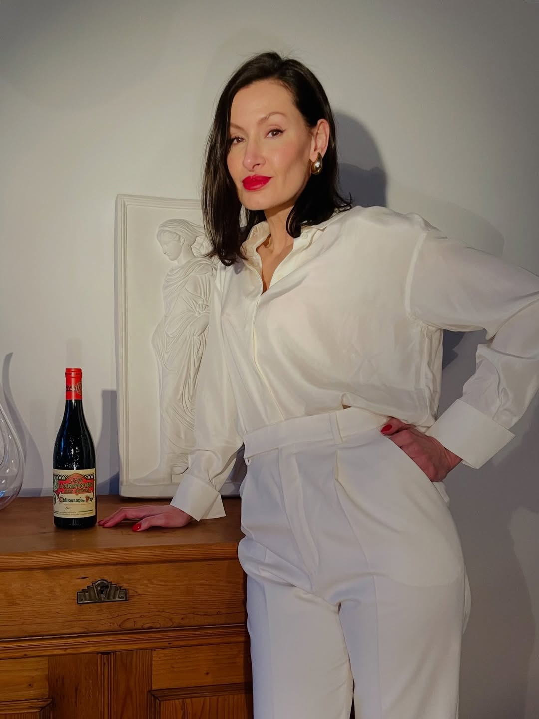 A study in contrast—crisp white tailoring against the deep, seductive tones of a legendary Rhône. Clos de l’Oratoire des Papes isn’t just poured… it’s styled. 🇫🇷🍷