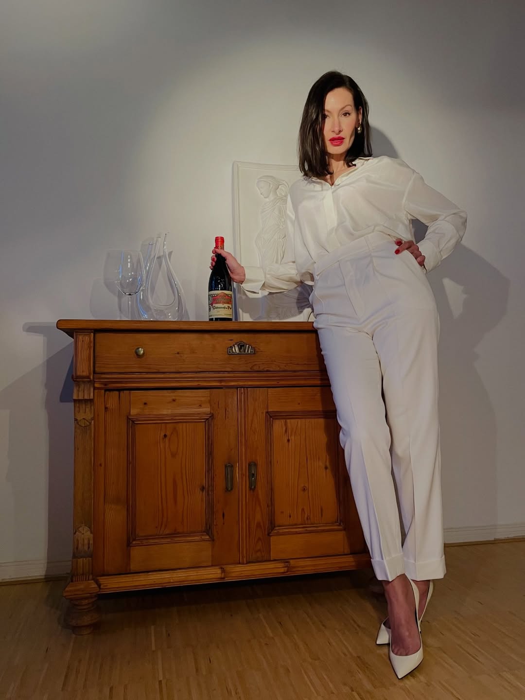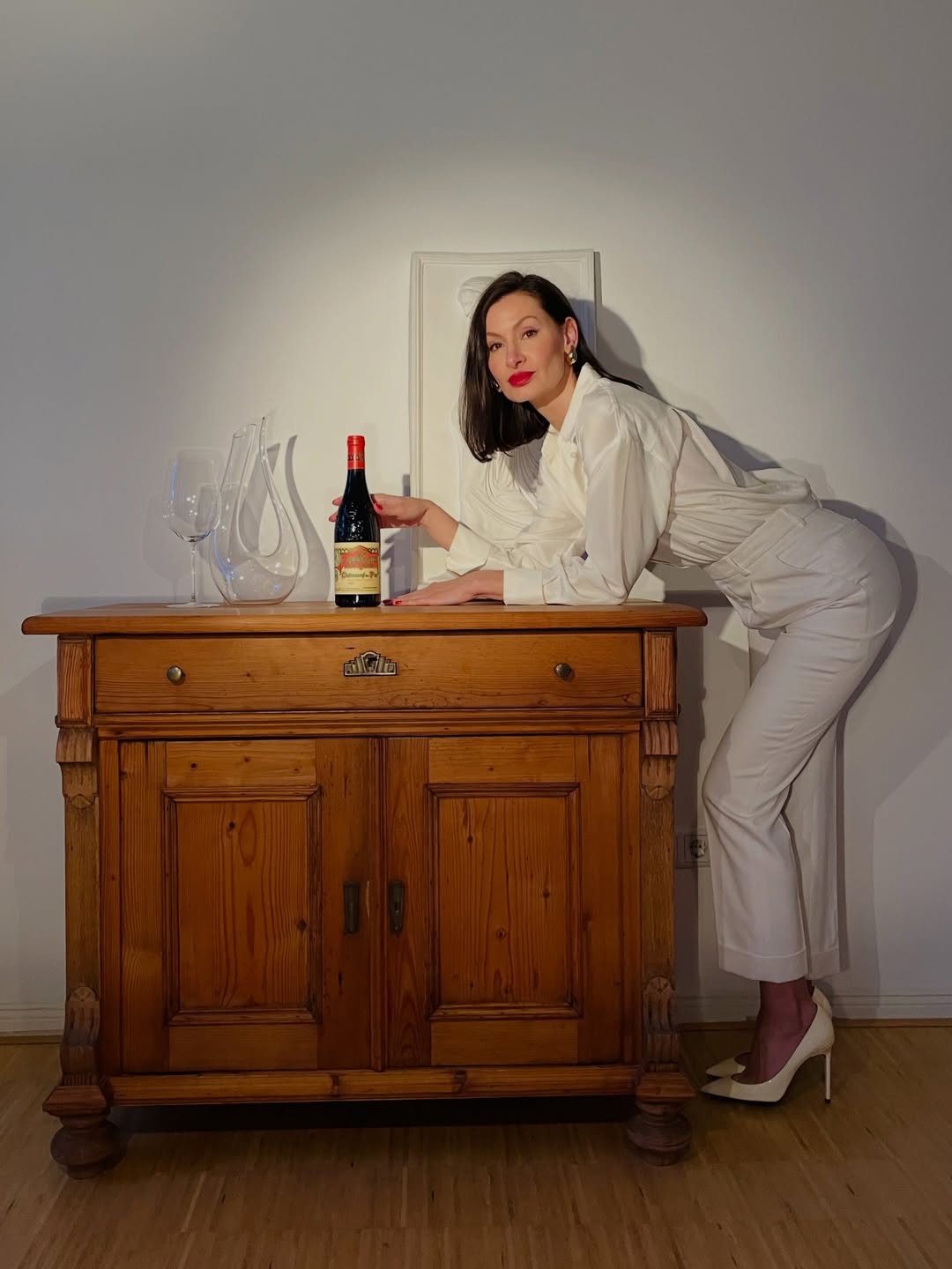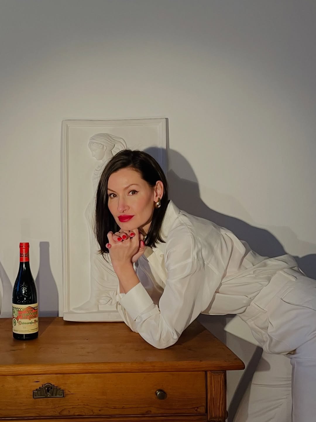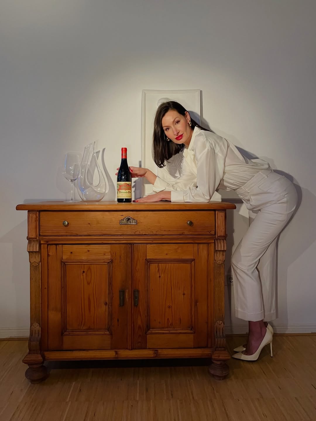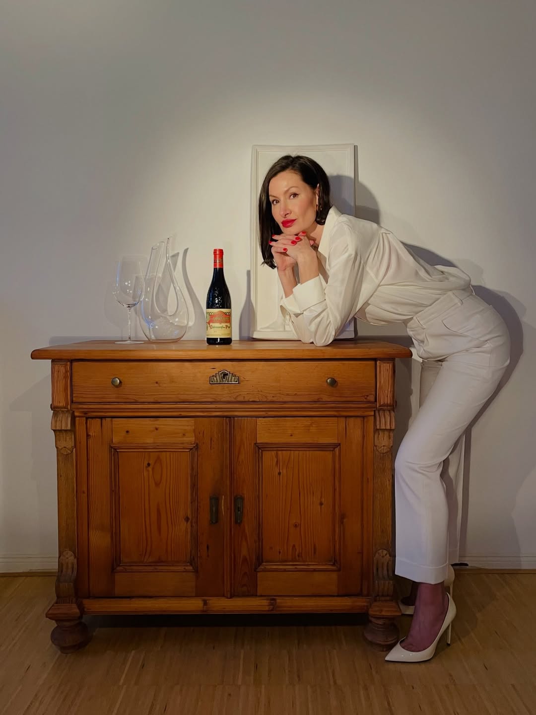 A study in contrast—crisp white tailoring against the deep, seductive tones of a legendary Rhône. Clos de l’Oratoire des Papes isn’t just poured… it’s styled. 🇫🇷🍷